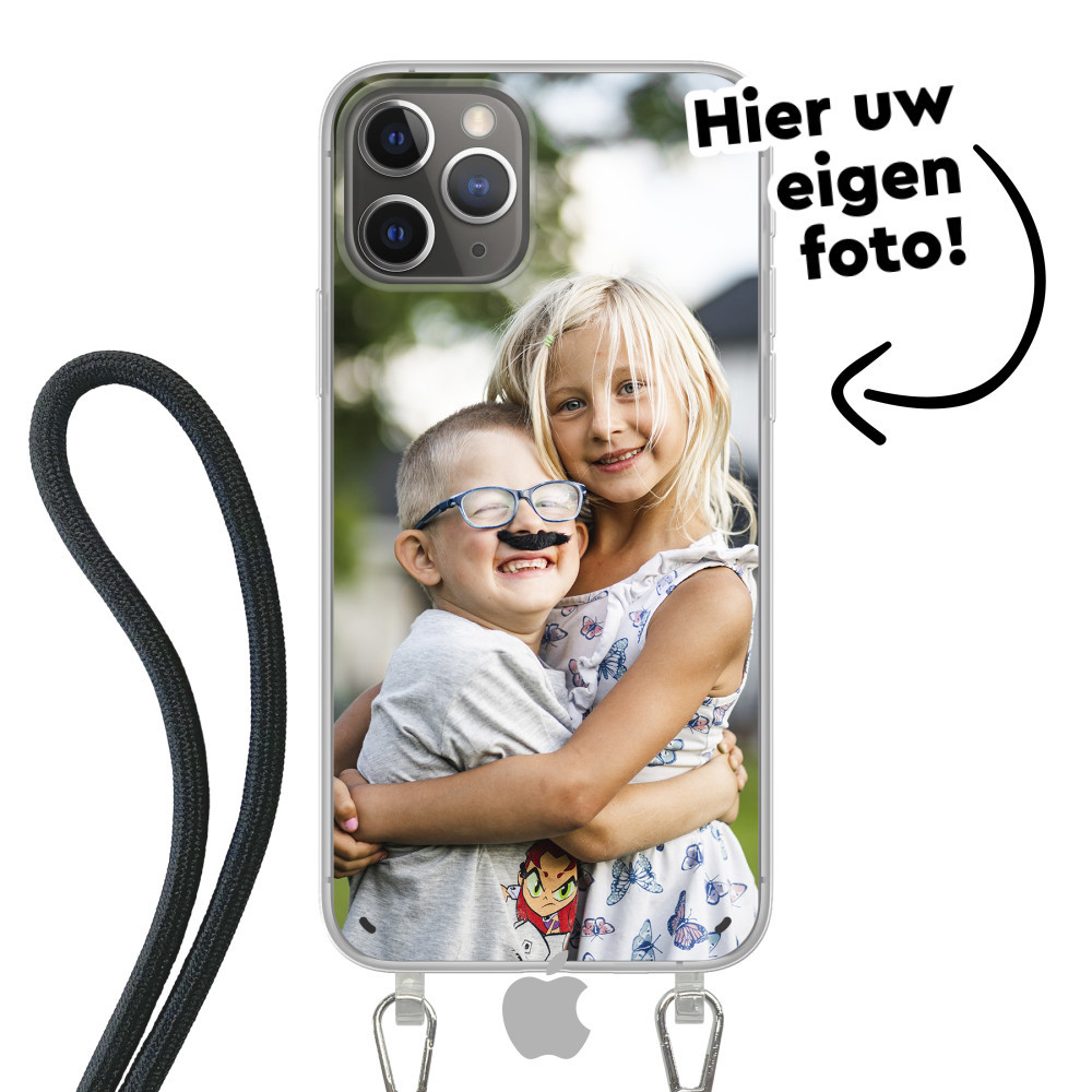 Ontdek het ultieme iPhone 11 Pro hoesje! Beschermend, flexibel soft case iPhone hoesje met een kabel om rond uw lichaam te dragen. Uw ontwerp in levendige kleuren met UV-print.