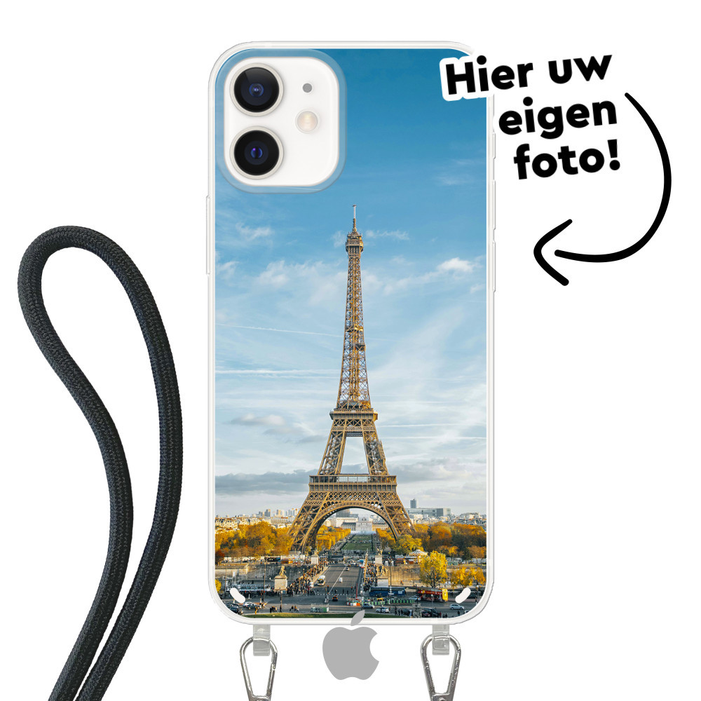 Ontdek het ultieme iPhone 12 mini hoesje! Beschermend, flexibel soft case iPhone hoesje met een kabel om rond uw lichaam te dragen. Uw ontwerp in levendige kleuren met UV-print.