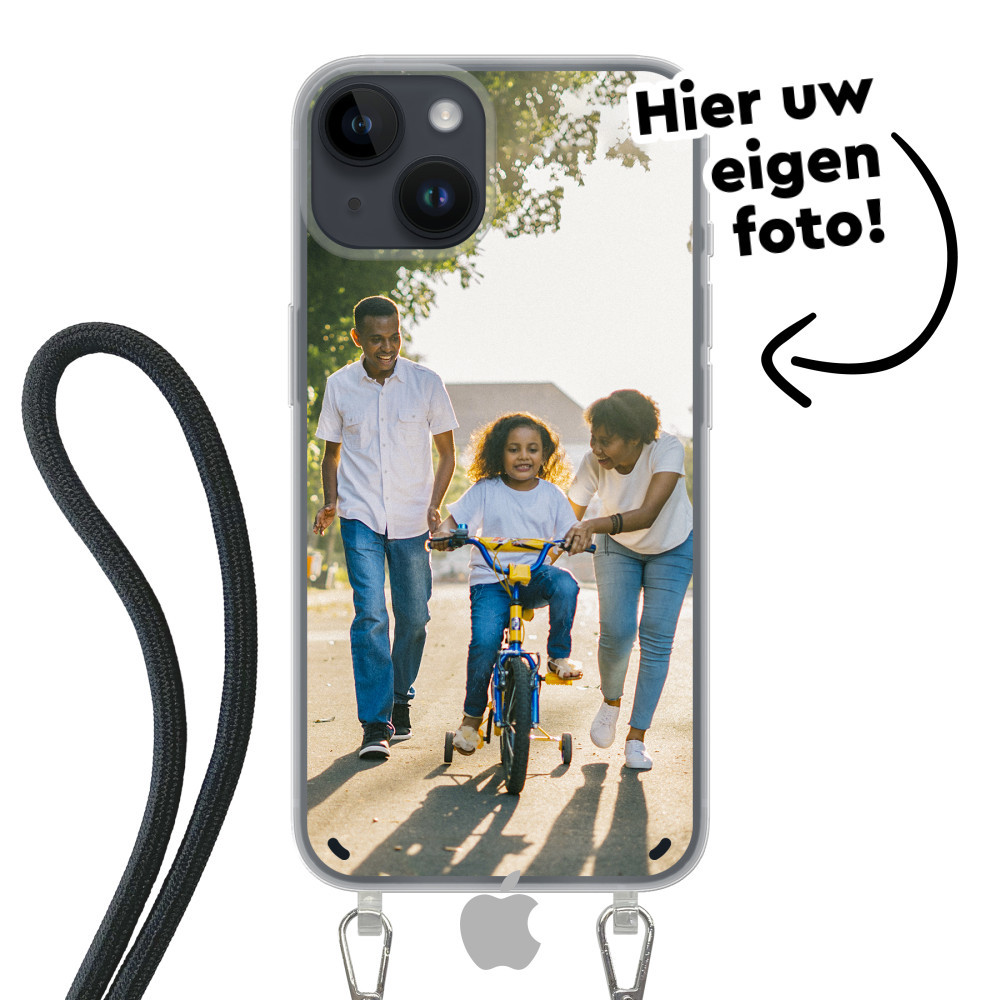 Ontdek het ultieme iPhone 14 hoesje! Beschermend, flexibel soft case iPhone hoesje met een kabel om rond uw lichaam te dragen. Uw ontwerp in levendige kleuren met UV-print.