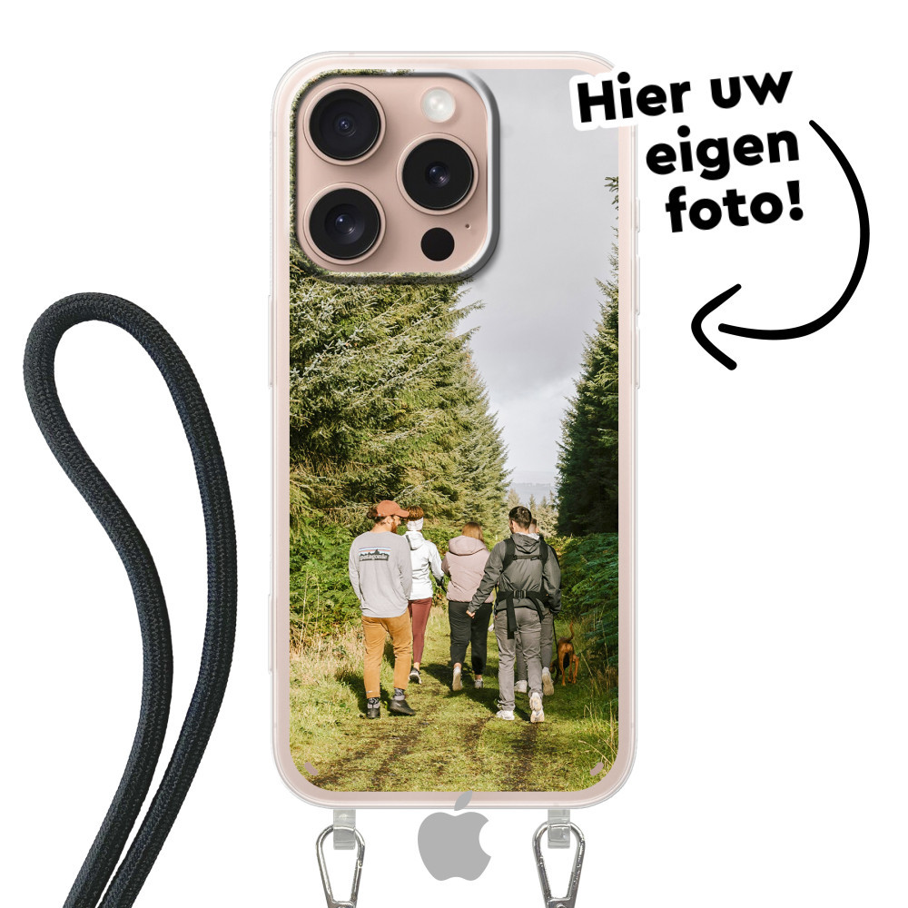 Ontdek het ultieme iPhone 16 Pro hoesje! Beschermend, flexibel soft case iPhone hoesje met een kabel om rond uw lichaam te dragen. Uw ontwerp in levendige kleuren met UV-print.