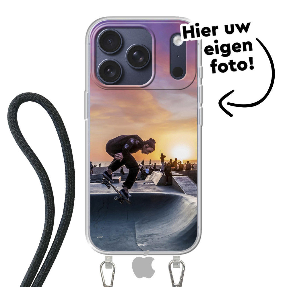 Ontdek het ultieme iPhone 17 Pro hoesje! Beschermend, flexibel soft case iPhone hoesje met een kabel om rond uw lichaam te dragen. Uw ontwerp in levendige kleuren met UV-print.