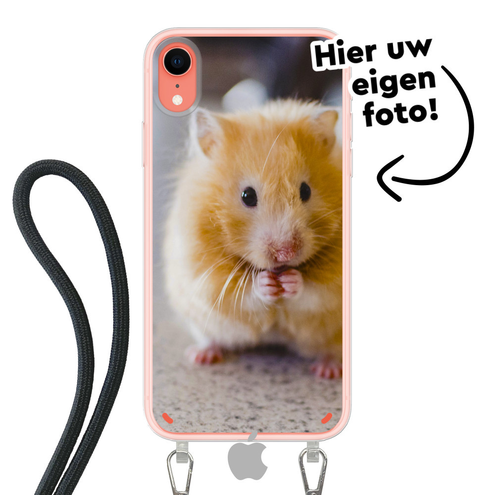 Ontdek het ultieme iPhone Xr hoesje! Beschermend, flexibel soft case iPhone hoesje met een kabel om rond uw lichaam te dragen. Uw ontwerp in levendige kleuren met UV-print.