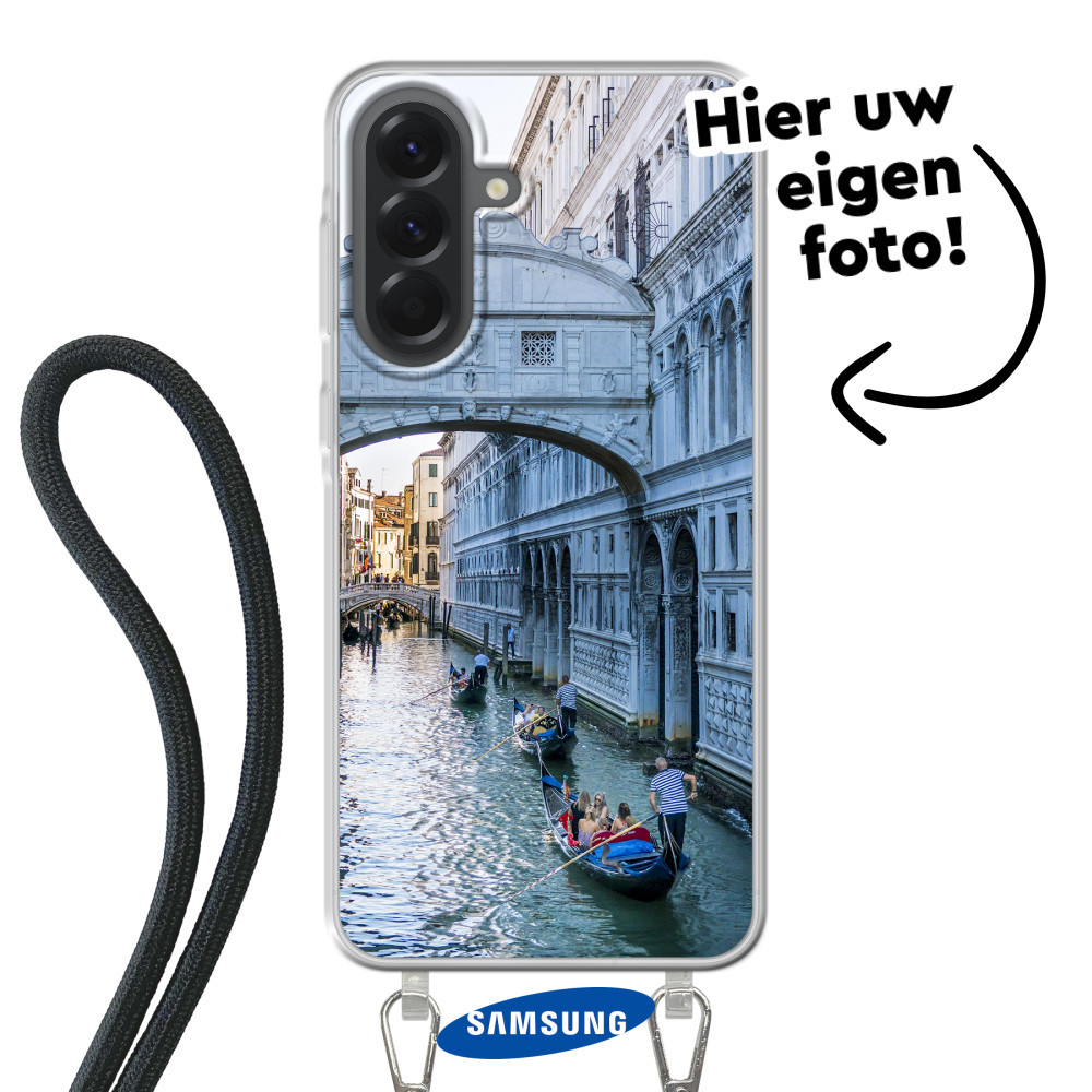 Ontdek het ultieme Samsung Galaxy A57 hoesje! Beschermend, flexibel soft case Samsung hoesje met een kabel om rond uw lichaam te dragen. Uw ontwerp in levendige kleuren met UV-print.