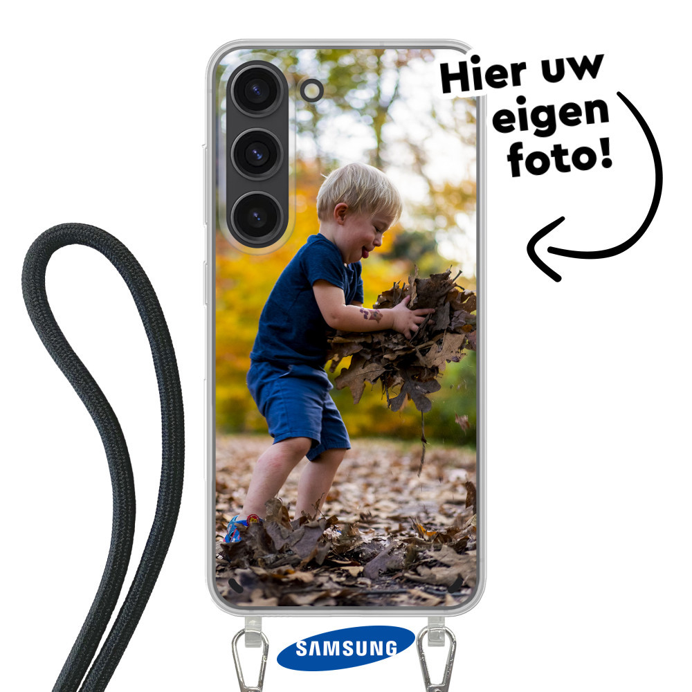 Ontdek het ultieme Samsung Galaxy S23 hoesje! Beschermend, flexibel soft case Samsung hoesje met een kabel om rond uw lichaam te dragen. Uw ontwerp in levendige kleuren met UV-print.